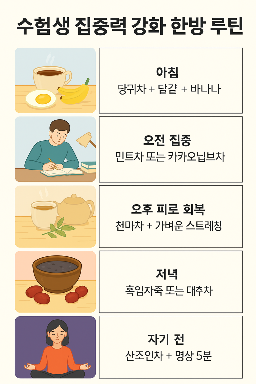 🔁 자연/한방 통합 루틴 예시 (수험생용 하루 스케줄)