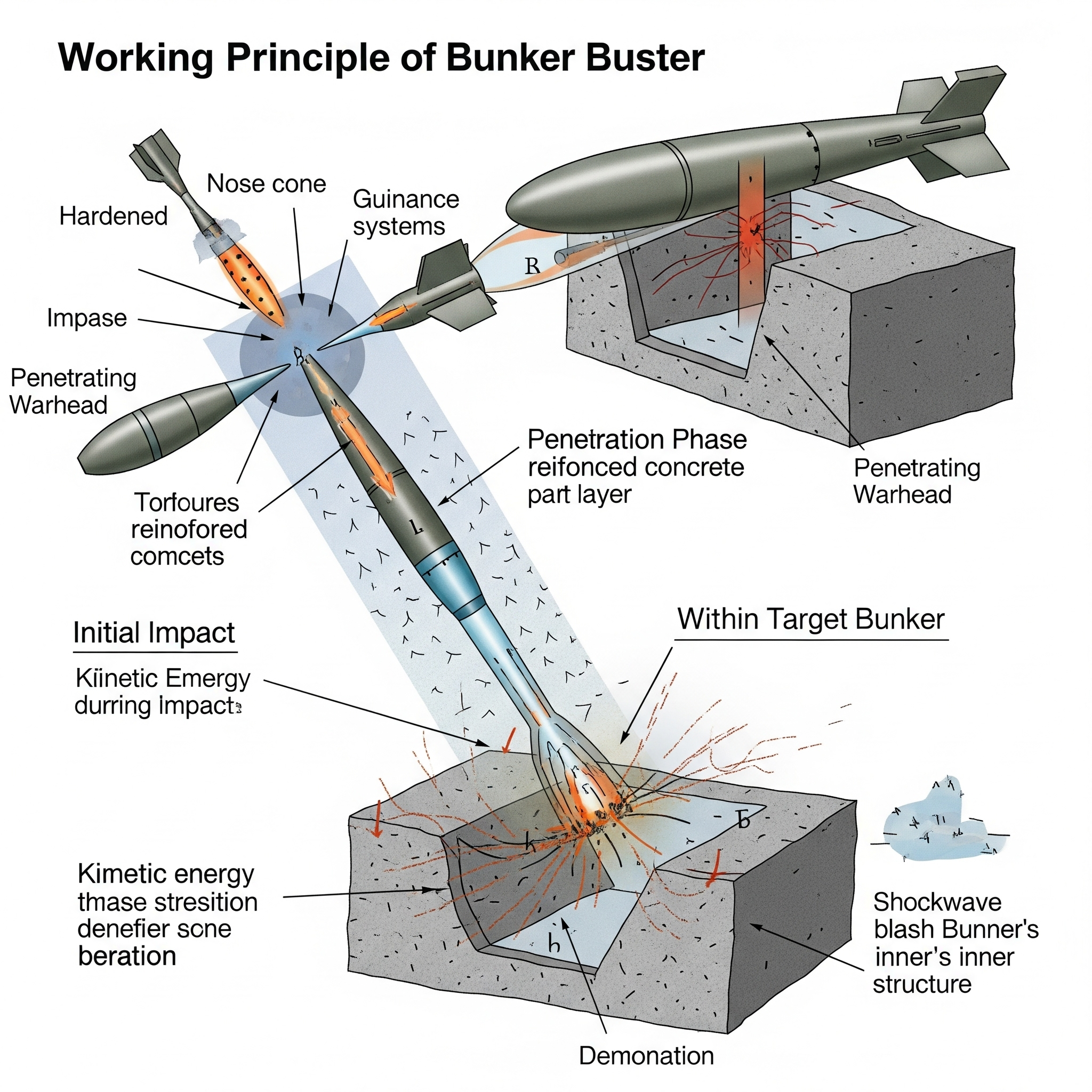 벙커버스터(Bunker Buster)는 단순한 지상 폭탄이 아니라, 지하 깊숙한 목표물을 직접 타격하기 위한 관통형 정밀 폭탄입니다.