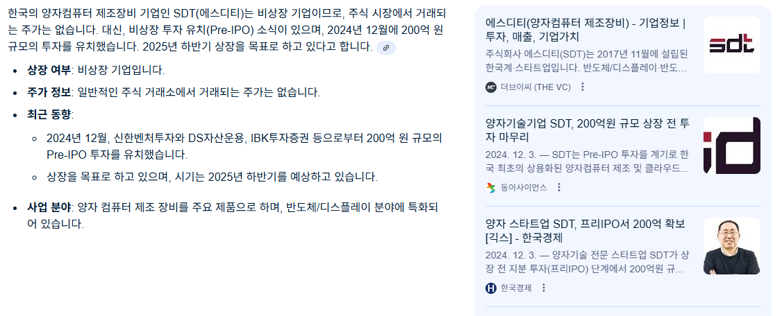 | SDT | 양자 컴퓨터 부품(제어장비) 및 시스템 제조 | 200억 원 Pre-IPO 투자 유치, 2025년 상장 추진 | |