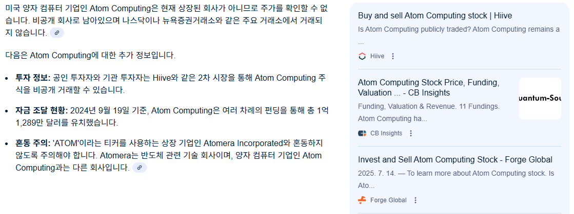 - Atom Computing (미국): Pasqal과 마찬가지로 중성 원자 기술을 사용하는 기업으로, 2024년 1,000큐비트 시스템을 시연하며 업계를 놀라게 했습니다. 이들은 결맞음이 높은 큐비트를 통해 양자 컴퓨팅의 고질적인 문제인 잡음(noise)을 해결하는 데 집중하고 있습니다.