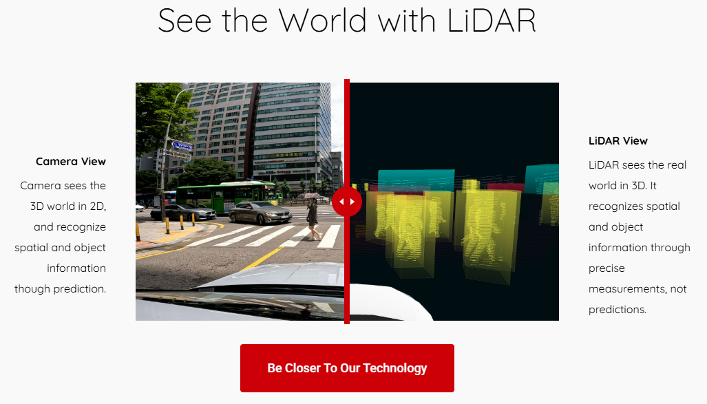 | 핵심 기술 | LiDAR 데이터만을 이용한 뛰어난 인지 기술, 센서 퓨전 기술 (LiDAR+카메라/레이더), 노코드(No-code) AI 개발 플랫폼 |
