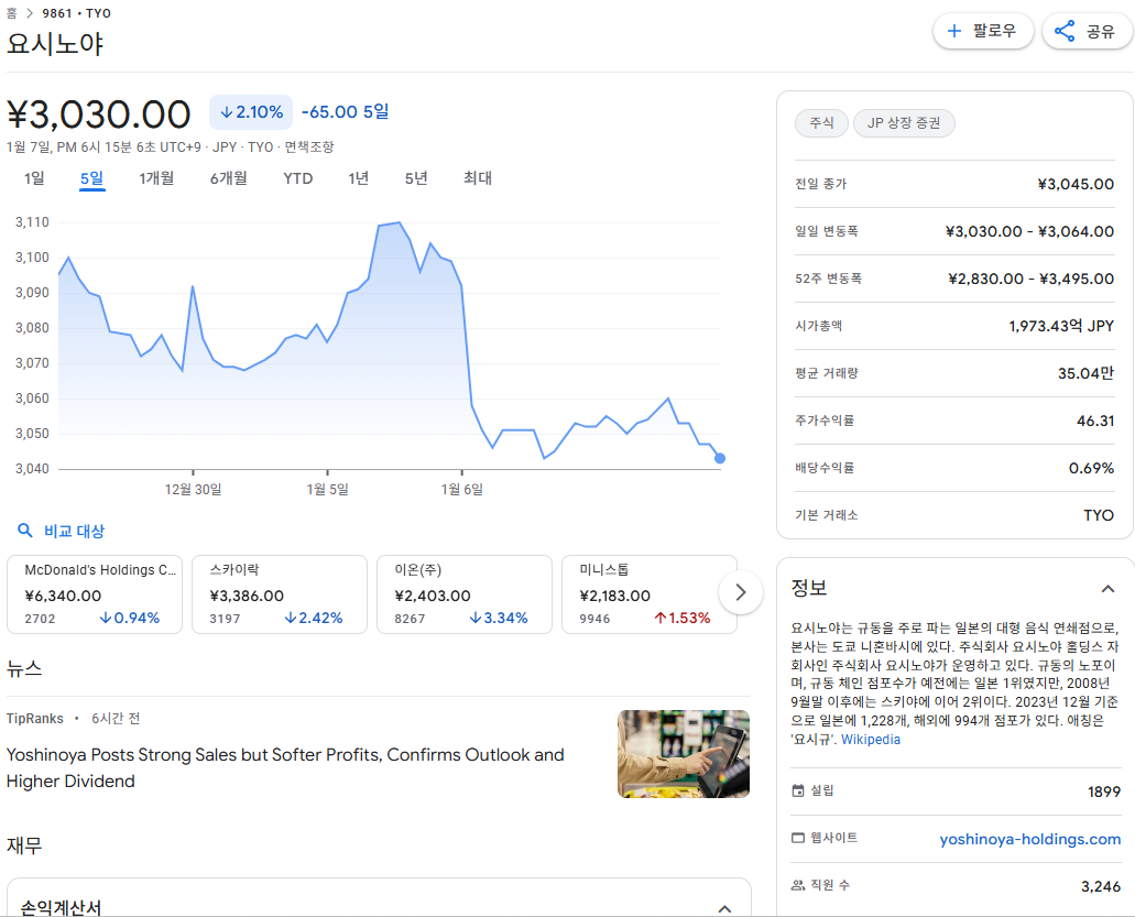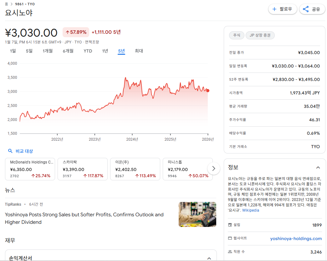 Keywords: 요시노야 주가, 요시노야 분석, 일본 외식주 투자, 규동 관련주, 요시노야 전망, Yoshinoya Holdings, 일본 주식 추천