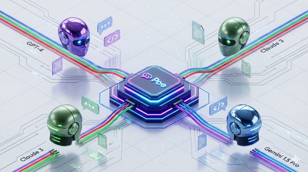- 한 줄 정의: 지식 공유 플랫폼 Quora가 출시한 **AI 챗봇 애그리게이터(Aggregator)**로, 오픈AI, 앤스로픽, 구글 등의 최신 LLM(대형 언어 모델)을 하나의 인터페이스에서 통합 제공하는 서비스.
