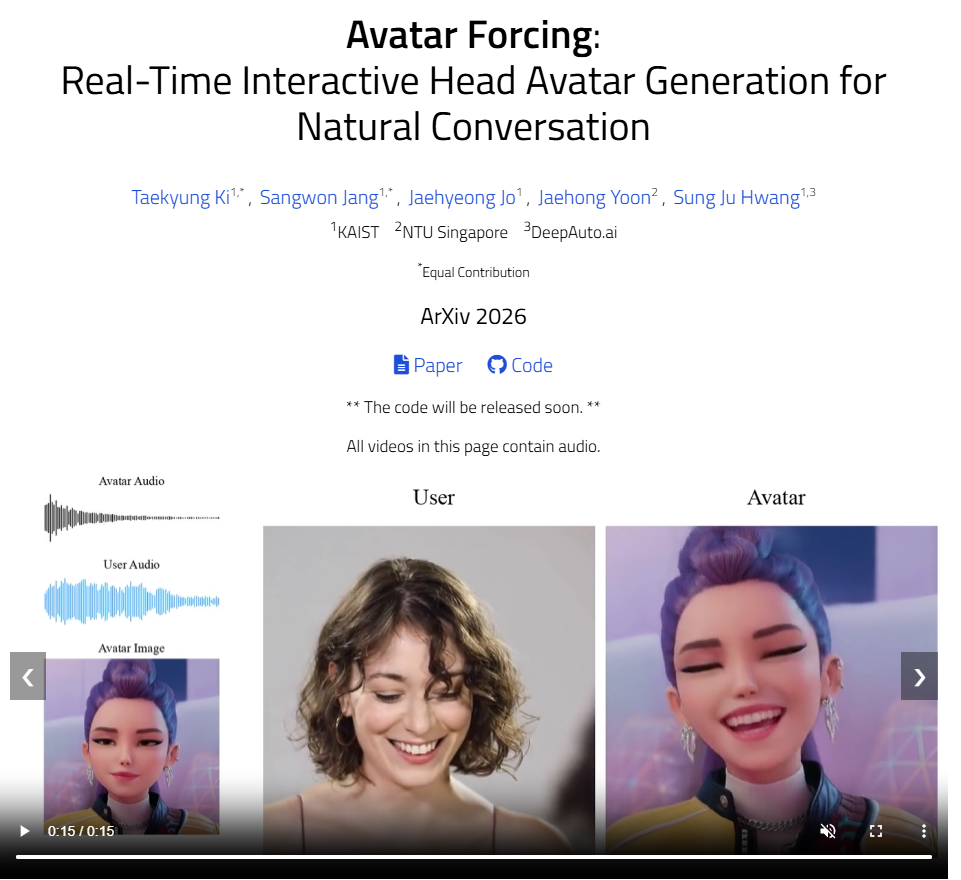 - AvatarForcing 공식 페이지: https://taekyungki.github.io/AvatarForcing/