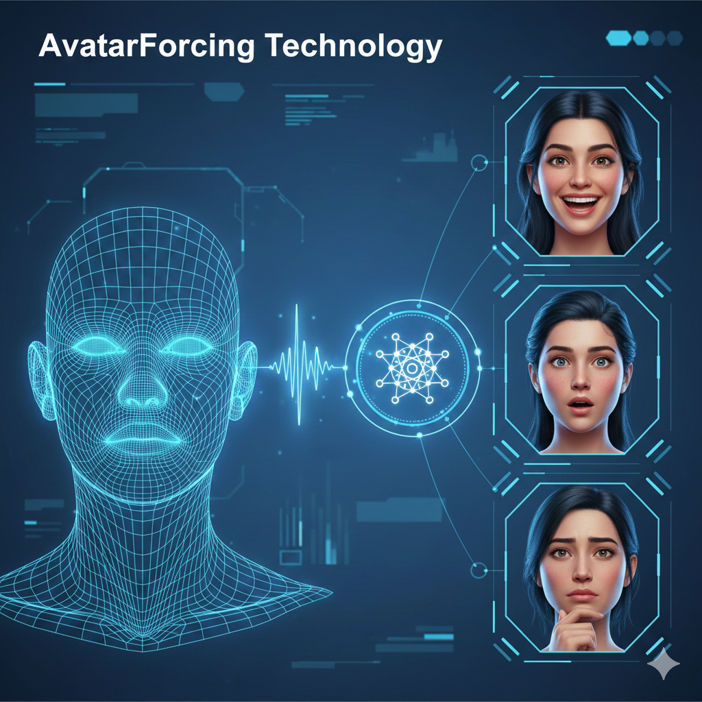 "한 줄 정의: 텍스트나 오디오 입력에 맞춰 실시간으로 고품질 아바타의 표정과 움직임을 정교하게 강제 제어(Forcing)하는 차세대 생성 프레임워크"