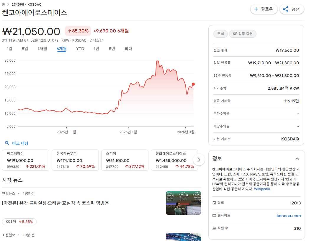 아래는 **Kencoa Aerospace(켄코아에어로스페이스, KOSDAQ: 274090)**에 대한 통합 분석입니다.