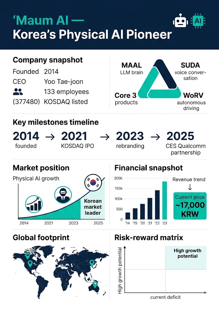 💡 [분석 의견] 마음AI의 SUDA(음성)·WoRV(자율주행)·MAAL(언어) 3종 통합은 국내 경쟁사 중 유일한 풀스택 Physical AI 접근법으로, 기술 차별성은 높으나 상용화 속도와 수익화가 과제입니다.