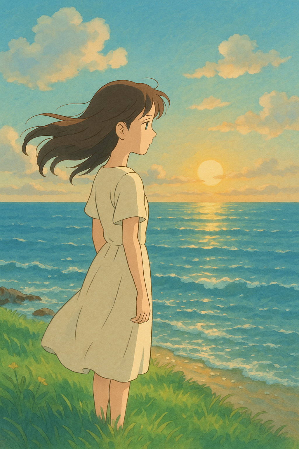 - A peaceful and emotional piano and cello instrumental track, inspired by Studio Ghibli. The melody flows like ocean waves, soft and nostalgic, evoking reflection and tranquility. Perfect for a healing moment by the seaside.