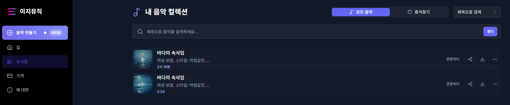 내가 만든 음악이 도서관(라이브러리)에 저장되어 있어요)