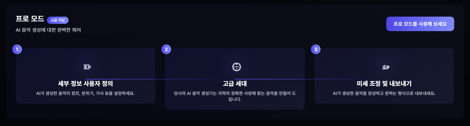 전문가처럼 내가 만든 가사,장르,분위기등을 입력하여 음악을 생성할수있어요