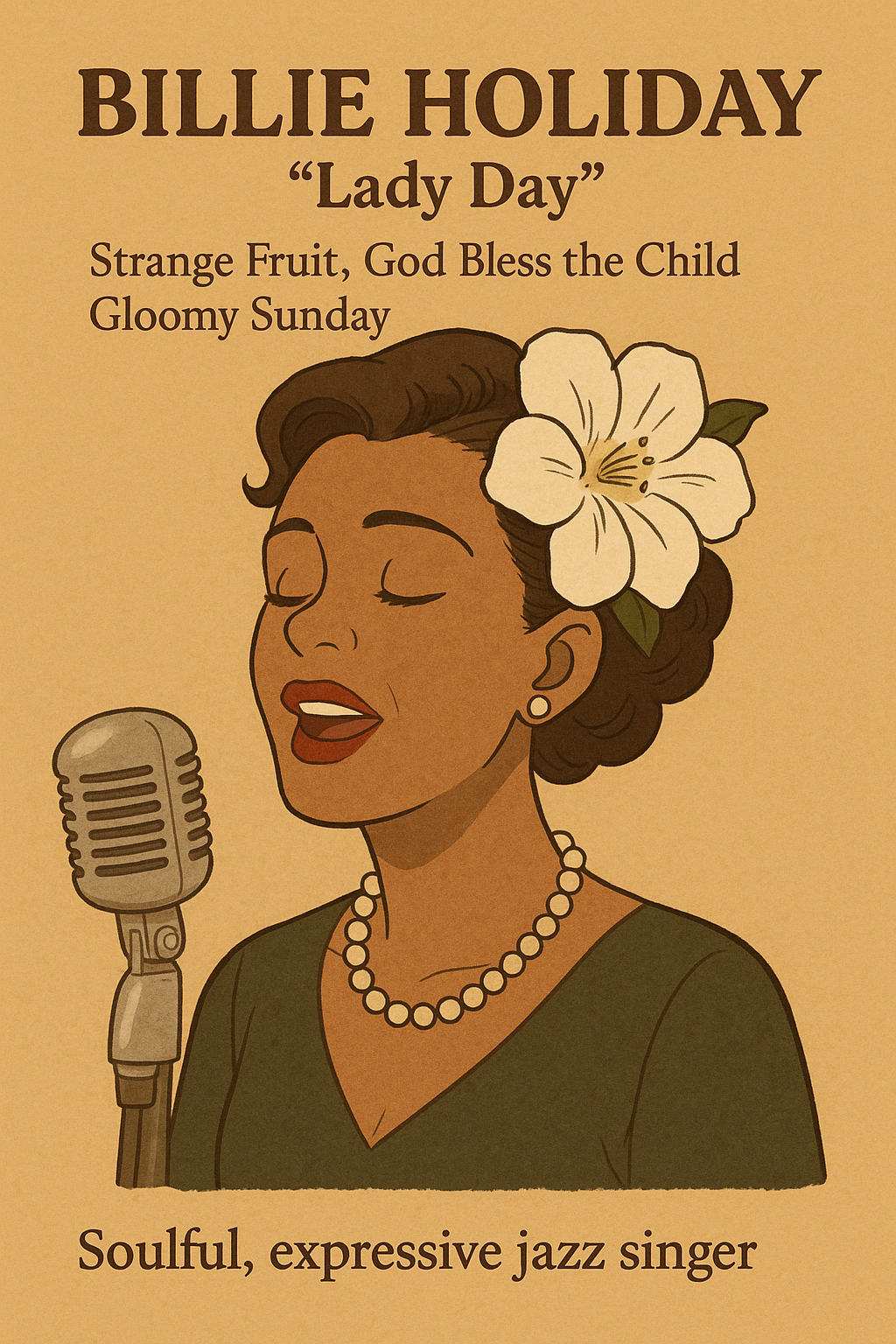 🎤 **빌리 홀리데이 (Billie Holiday)**는 20세기 재즈 역사상 가장 상징적인 재즈 보컬리스트입니다.