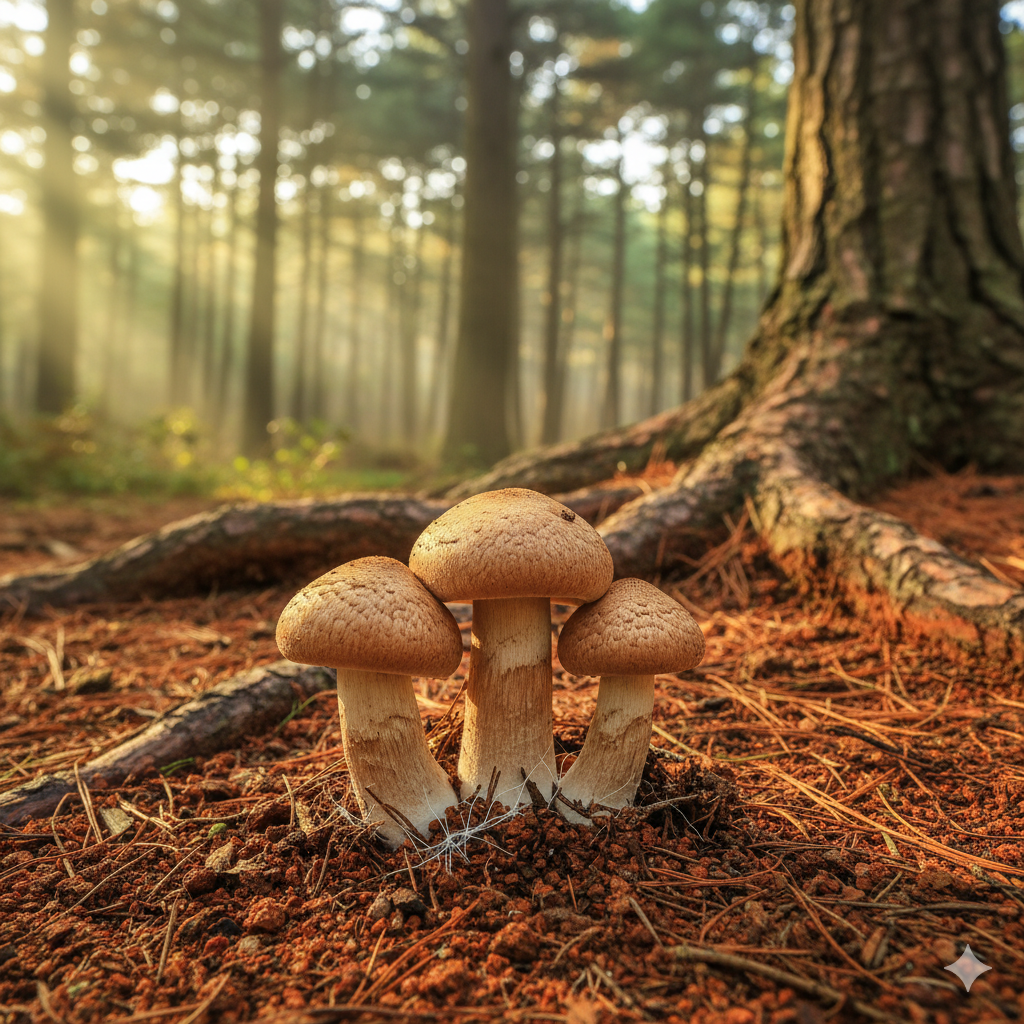 - 소나무 숲: 송이는 다른 식물의 뿌리와 공생하는 균근성 버섯입니다. 특히 20~80년생의 적송(붉은 소나무) 숲에서만 자랍니다.